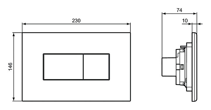 Кнопка смыва Ideal Standard SOLEA P2 R0110A6 предназначена для инсталляции PROSYS R027767. Аксессуар прямоугольной формы с продолговатой двойной клавишей, непосредственно приводящей в действие экономый режим большого и малого механизм смыва. Изделие выполнено из пластика. В комплект поставки пневматический переходный набор не входит и приобретается отдельно. Дополнительные характеристики: