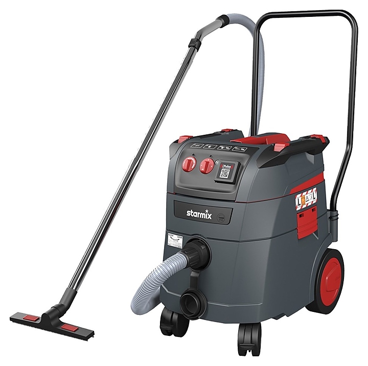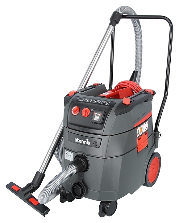 Промышленный пылесос Starmix iPulse L 1635 Top предназначен для сбора вредной пыли категории L, грязной жидкости, сухой очистки напольных поверхностей и стен в складских помещениях и производственных цехах на промышленных предприятиях различных отраслей, в автосервисах, в ходе ремонтно-строительных или реставрационных работ. Модель оснащена розеткой для подключения электроинструментов, поплавковым датчиком уровня жидкости, 4 фиксаторами для стяжных ремней, держателем для принадлежностей и интегрированным в ручку откидным крюком для хранения кабеля. Корпус, колеса и насадки выполнены из ударопрочного пластика, удлинительные трубки и колено – из нержавеющей стали, ведущая дуга – из металла, соединительная муфта – из резины, изоляция кабеля – из поливинилхлорида, складчатый кассетный фильтр – из полиэфирного материала, фильтр-мешок – из флиса. Комплектация: