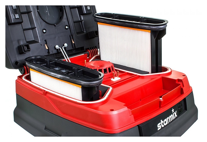Промышленный пылесос Starmix ISC L 1650 Top предназначен для сбора вредной пыли категории L, грязной жидкости, сухой очистки напольных поверхностей и стен в складских помещениях и производственных цехах на промышленных предприятиях различных отраслей, в автосервисах, в ходе ремонтно-строительных или реставрационных работ. Модель оснащена розеткой для подключения электроинструментов, поплавковым датчиком уровня жидкости, держателем для принадлежностей и крюком для хранения кабеля. Корпус, колеса и насадки выполнены из ударопрочного пластика, удлинительные трубки и колено – из нержавеющей стали, соединительная муфта – из резины, изоляция кабеля – из поливинилхлорида, плоский складчатый кассетный фильтр – из полиэстера, фильтр-мешок – из текстильного материала. Комплектация: