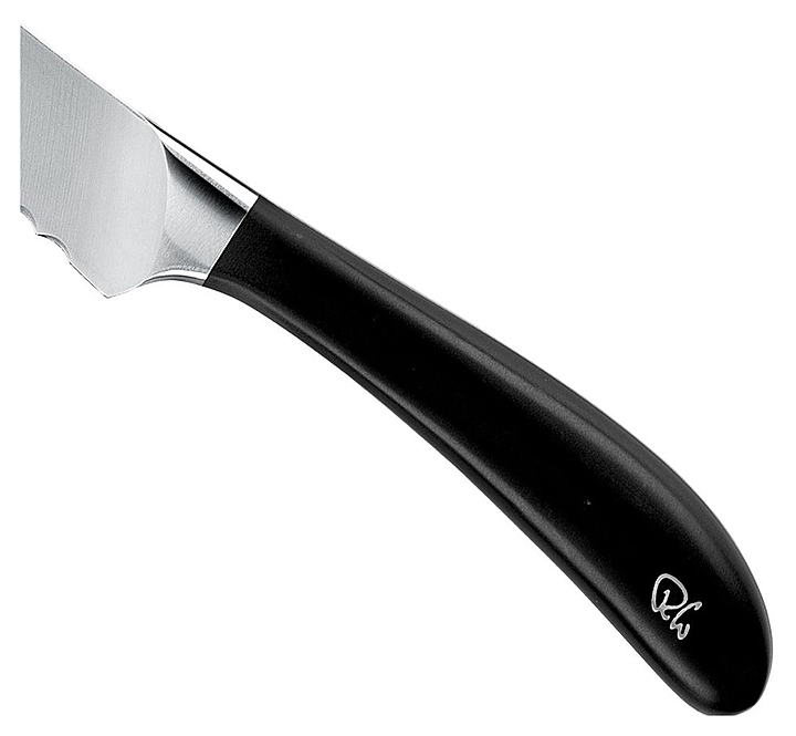 Кухонный нож ROBERT WELCH Signature knife предназначен для нарезки хлеба и пирогов на предприятиях общественного питания и торговли, а также в частных домах и квартирах. Изделие подходит для мытья в посудомоечной машине. Модель оснащена кованным зубчатым лезвием и заостренным концом. Лезвие изготовлено из немецкой нержавеющей стали DIN 1.4116 с зеркальной полировкой, чтобы режущая кромка была максимально тонкой, ручка - из тактильного материала DuPont. Особенности:
