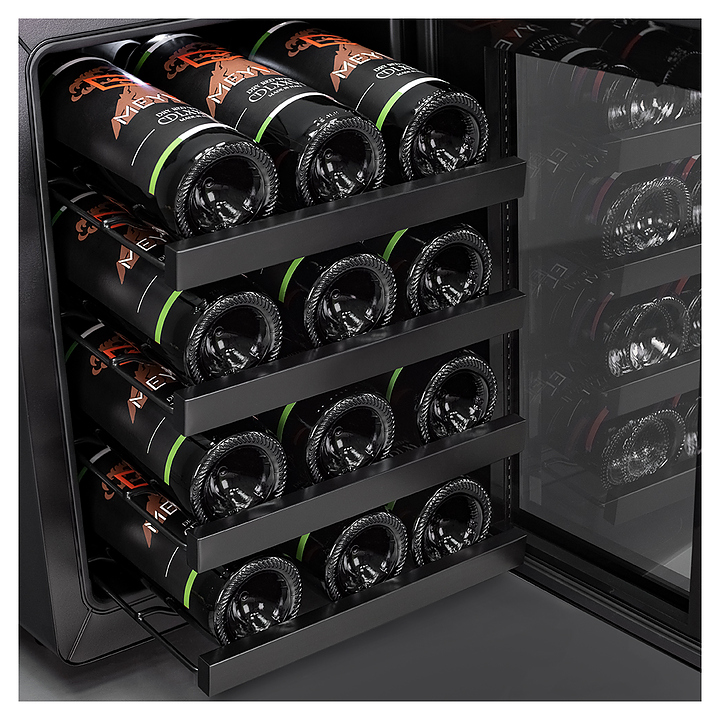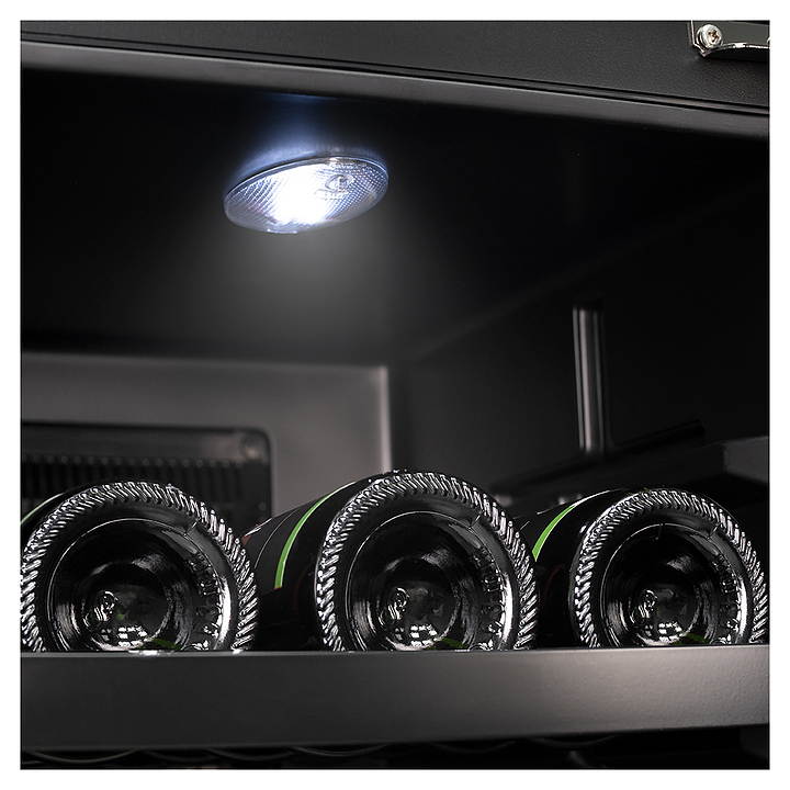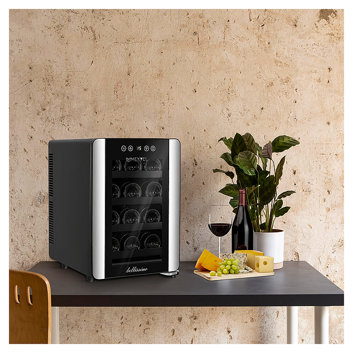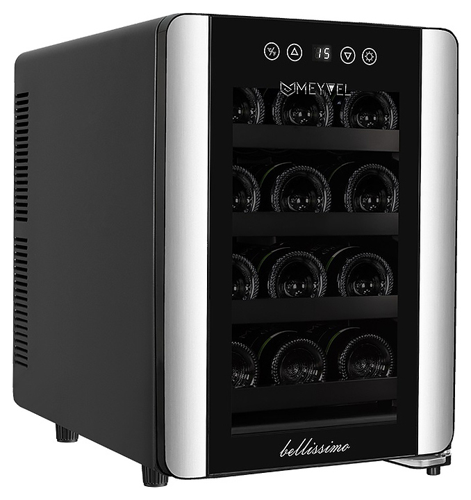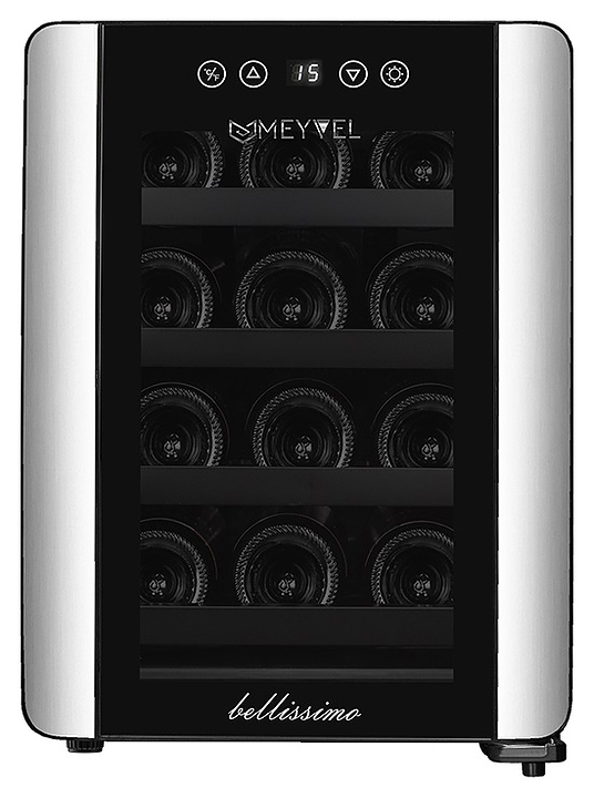 Винный шкаф MEYVEL MV12-BSF1 (easy) предназначен для демонстрации, хранения и создания оптимальных условий для сохранения всех вкусовых свойств вина в бутылках на предприятиях общественного питания, торговли, в барах, ресторанах, специализированных магазинах, частных домах или квартирах. Модель оснащена сенсорной панелью управления, электронным термостатом и светодиодной подсветкой. Корпус выполнен из окрашенной в черный цвет стали, дверь - из нержавеющей стали и двойного стекла с защитой от ультрафиолетовых лучей, полки - из хромированного металла. Особенности: