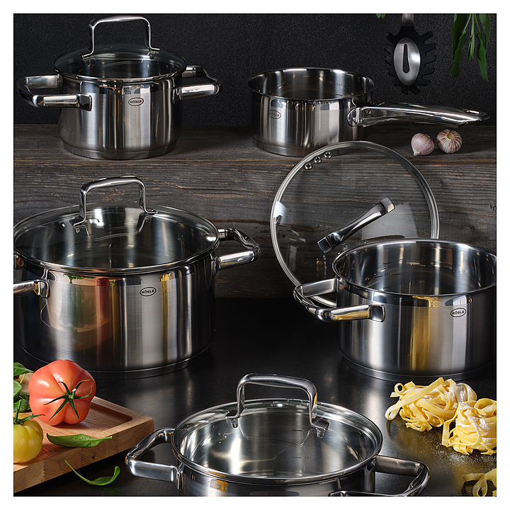 Кастрюля ROESLE Charm используется на предприятиях общественного питания и торговли, в частных домах и квартирах для приготовления широкого спектра блюд. Модель оснащена широкими эргономичными ручками и крышкой. Изделие выполнено из высококачественной безопасной матовой нержавеющей стали 18/10 с полированным ободком, крышка - из закаленного стекла Sodalime. Особенности: