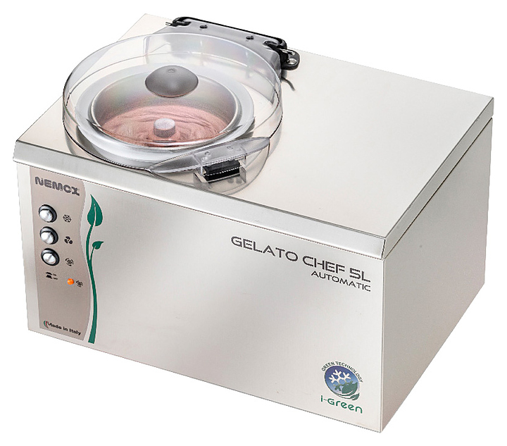 Фризер для мороженого Nemox i-Green Gelato Chef 5L Automatic используется в барах, кафе, на открытых летних площадках, в специальных отделах супермаркетов и торговых центрах для приготовления мороженого кремообразной текстуры. Модель оснащена индукционным двигателем, фиксированной и съемной емкостями, крышкой с датчиком, блокирующим вращение лопасти при ее подъеме. Корпус выполнен из нержавеющей стали AISI 304, лопасть для перемешивания - из нержавеющей стали, емкости - из нержавеющей стали 18/10. В комплект поставки входят лопатка для мороженого, мерный стаканчик и набор съемных скребков для фиксированной и съемной емкостей. Особенности: