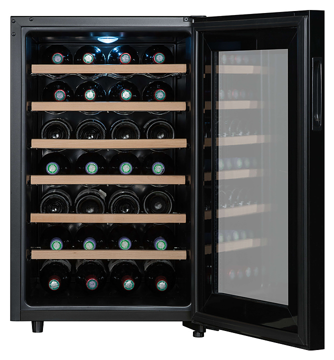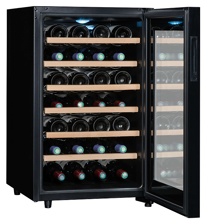 Винный шкаф Climadiff CC28 предназначен для хранения вина при определенном уровне влажности и температуры в ресторанах, специализированных магазинах, отелях, подсобных складских помещениях, в частных домах или квартирах. Модель оснащена сенсорным цифровым дисплеем и подсветкой. Особенности: