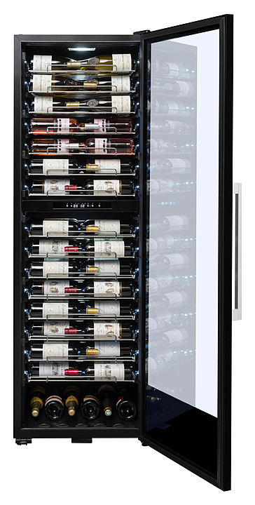 Винный шкаф La Sommeliere MZ180TZ создает оптимальные условия для сохранения всех вкусовых свойств разливного вина в ресторанах, специализированных магазинах, подсобных складских помещениях, в частных домах или квартирах. Модель оснащена электронным термостатом с сенсорным цифровым дисплеем. Полки выполнены из металла, дверь - из стекла с УФ защитой. Особенности:
