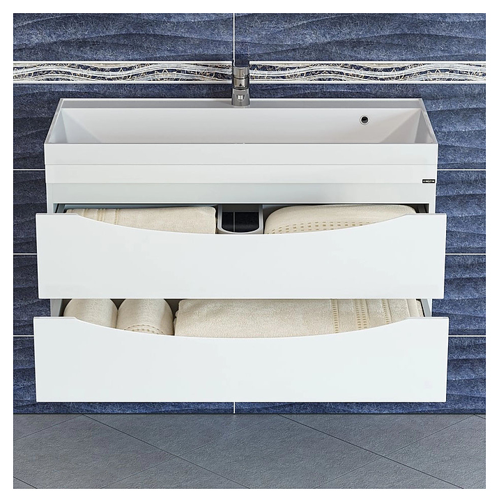 Тумба под раковину СаНта Сатурн 100 дополнит интерьер ванной комнаты. Благодаря подвесной конструкции модель не занимает много места, что экономит пространство в ванной комнате и облегчает уборку. Тумба оснащена 2 выдвижными ящиками. Корпус выполнен из влагостойкой ЛДСП, фасад - из МДФ и покрыт эмалью для защиты поверхности от внешних воздействий. Тумба используется вместе с раковиной Classic 100. Особенности: