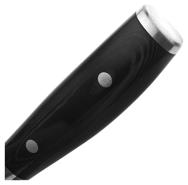 Кухонный нож YAXELL Santoku Gyuto YA36000G серии Run предназначен для нарезки продуктов на предприятиях общественного питания и торговли и для домашнего применения. Изделие оснащено лезвием с углублениями. Лезвие изготовлено из сверхпрочной стали VG-10 Laminated, состоящей из кобальта, молибдена, ванадия и углерода, в обкладке из высокоуглеродистой нержавеющей стали по 34 слоя с каждой стороны, рукоять - из черного полимерного материала Canvas Micarta на основе льняного полотна и смолы, заклепки рукояти и больстеры - из нержавеющей стали. Особенности: