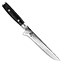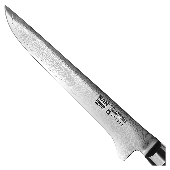 Обвалочнй нож YAXELL Boning YA36006 серии Run предназначен для отделения мяса от костей, шкур, жил на предприятиях общественного питания и торговли и для домашнего применения. Лезвие изготовлено из сверхпрочной стали VG-10 Laminated, состоящей из кобальта, молибдена, ванадия и углерода, в обкладке из высокоуглеродистой нержавеющей стали по 34 слоя с каждой стороны, рукоять - из черного полимерного материала Canvas Micarta на основе льняного полотна и смолы, заклепки рукояти и больстеры - из нержавеющей стали. Особенности: