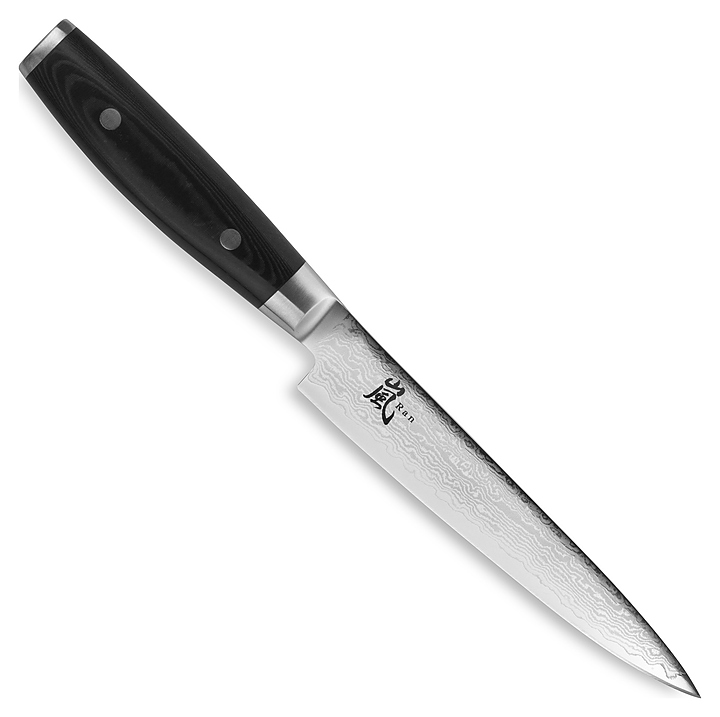 Кухонный нож YAXELL Sujihiki YA36007 серии Run предназначен для тонкой нарезки продуктов на предприятиях общественного питания и торговли и для домашнего применения. Лезвие изготовлено из сверхпрочной стали VG-10 Laminated, состоящей из кобальта, молибдена, ванадия и углерода, в обкладке из высокоуглеродистой нержавеющей стали по 34 слоя с каждой стороны, рукоять - из черного полимерного материала Canvas Micarta на основе льняного полотна и смолы, заклепки рукояти и больстеры - из нержавеющей стали. Особенности: