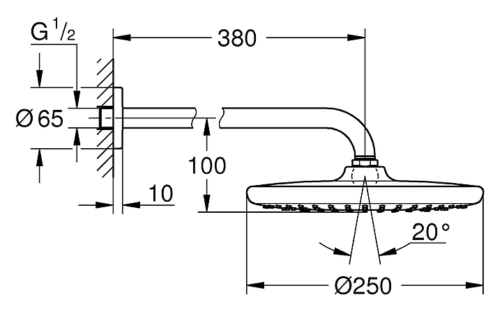 Душ верхний с кронштейном Grohe Tempesta 250 26668000