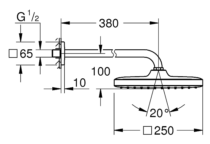 Душ верхний с кронштейном Grohe Tempesta 250 Cube 26687000