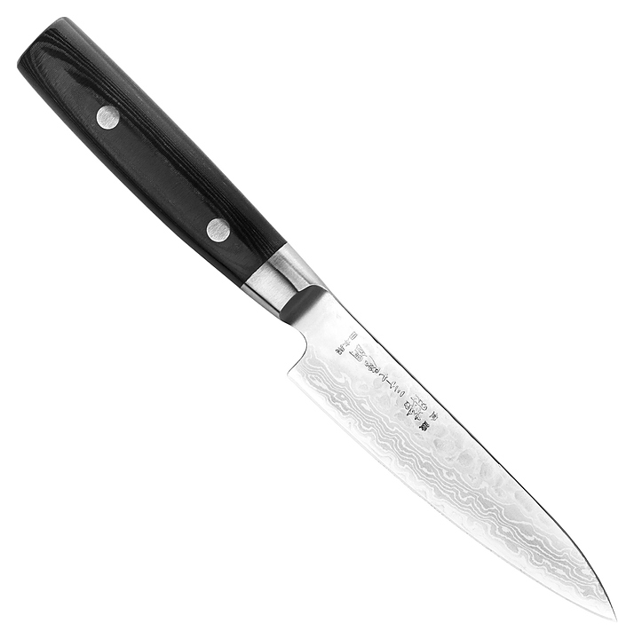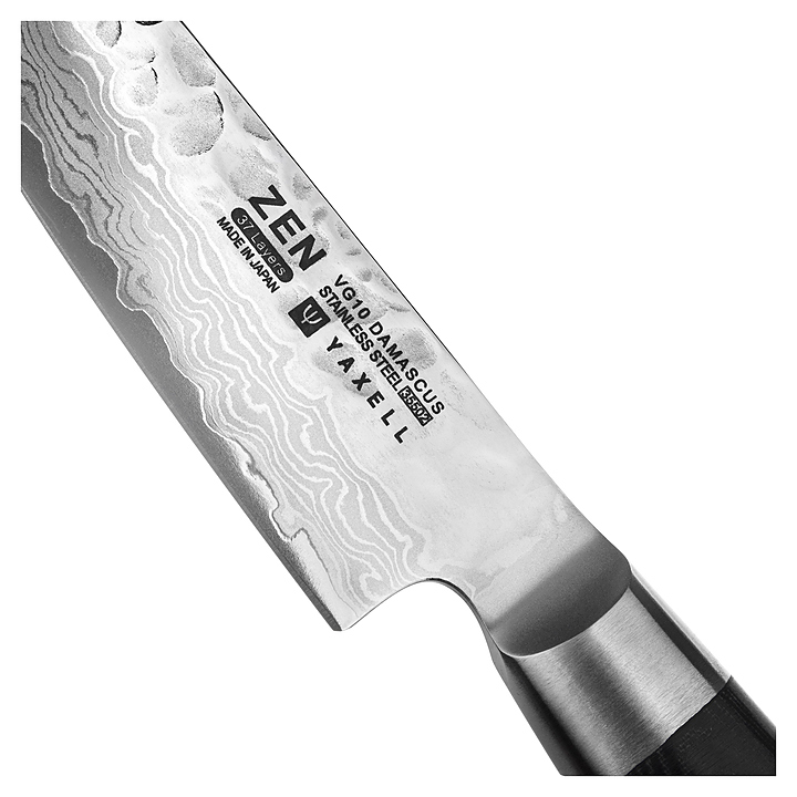 Универсальный нож YAXELL Petty YA35502 серии Zen предназначен для нарезки продуктов на предприятиях общественного питания и торговли и для домашнего применения. Лезвие изготовлено из сверхпрочной стали VG-10 Laminated, состоящей из кобальта, молибдена, ванадия и углерода, в обкладке из высокоуглеродистой нержавеющей стали по 18 слоев с каждой стороны, рукоять - из черного полимерного материала Canvas Micarta на основе льняного полотна и смолы, заклепки рукояти и больстеры - из нержавеющей стали. Особенности:
