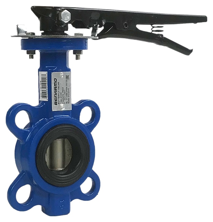 Затвор дисковый поворотный Benarmo 107-4935 (EURO), PN 1,6 МПа, ДУ 50, межфланцевый чугунный, диск стальной, с рукояткой