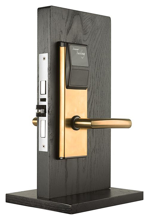 Электронный замок Xeeder Sailing L5121 используется в гостиницах, небольших отелях, хостелах, пансионатах и санаториях для запирания дверей. Модель оснащена врезным запорным механизмом американского стандарта ANSI, звуковым и световым индикатором низкого заряда батарей, независимым от электросети питанием и двойными часами для контроля времени регистрации и отъезда гостей. Внешние панели и ручки изготовлены из нержавеющей стали с PVD-покрытием, обеспечивающим повышенную износостойкость и защиту от химического и механического воздействия, комплектующие запорного механизма - из металла. Получить сервисное обслуживание и проверить память открытий можно с помощью программирующего устройства (пульта LMA). Особенности: