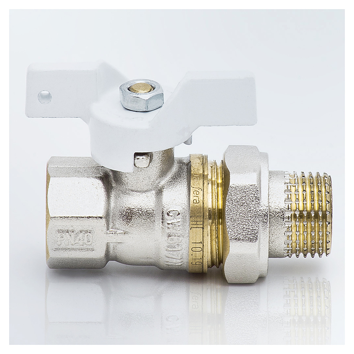 Полнопроходной шаровой кран Aquasfera 107-5161 используется в качестве запорной арматуры в системах пожаротушения, отопления, холодного и горячего водоснабжения в хозяйственно-питьевых сетях и промышленных технологических трубопроводах. Модель оснащена рукояткой-бабочкой с отверстием для пломбирования. Корпус, шар, шток, гайка сальника, полусгон и накидная гайка выполнены из высококачественной горячепрессованной латуни (CW617N), рукоятка – из алюминиевого сплава с покрытием порошковой краской, гайка – из конструкционной стали (S235) с цинковым покрытием, уплотнение шара, сальника и антифрикционное – из политетрафторэтилена (PTFE), уплотнение полусгона – из этиленпропилендиен мономера (EPDM), корпус, полусгон и накидная гайка с никелевым покрытием, шар с хромированным покрытием. Модель поставляется в собранном виде в положении полного открытия. Особенности: