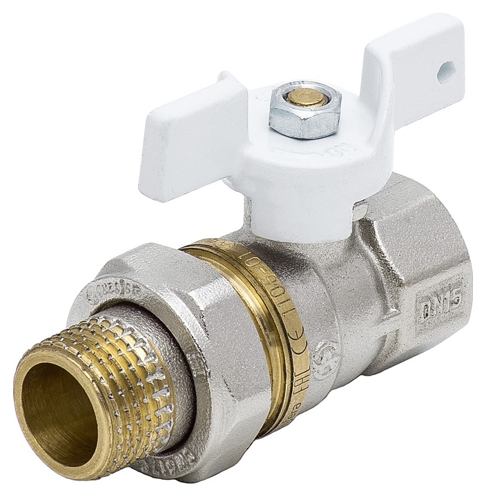 Кран шаровой Aquasfera 107-5161, ДУ 20, PN 3 МПа, 3/4"ВР - 3/4"НР (американка), 1107-02 STANDARD полнопроходной латунный с бабочкой