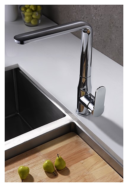 Смеситель Kaiser Estilo 62044 предназначен для использования в кухонных помещениях для подачи горячей и холодной воды. Модель оснащена ккерамическим картриджем, обеспечивающим плавный ход рычага смесителя, контроль и точность при выборе напора и температуры воды, а также аэратором для создания мягкой ровной струи без разбрызгивания. Изделие выполнено из высококачественной латуни, отличающейся прочностью, долговечностью и устойчивостью к перепадам температур. В комплект поставки входят аэратор и гибкая подводка. Особенности: