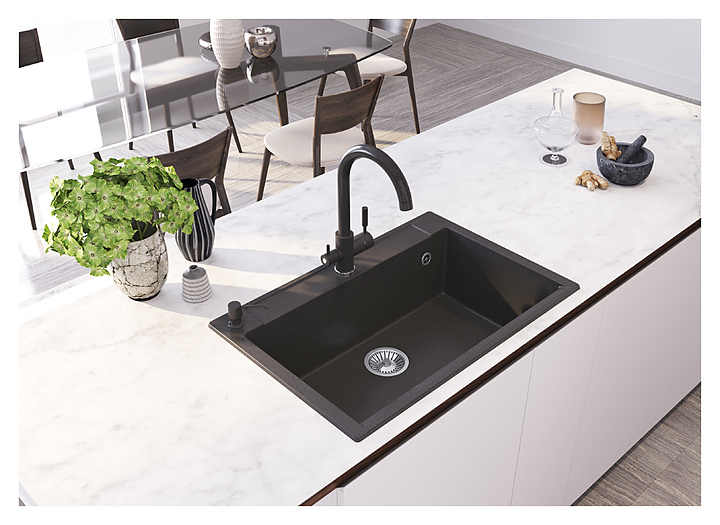 Мойка Polygran Argo-760 предназначена для рационального планирования рабочего места на кухне. Модель оснащена широким бортиком для установки смесителя и размещения кухонных аксессуаров. Изделие выполнено из гранита, который выдерживает колебания температуры, имеет высокую прочность и стойкость к пищевым и химическим красителям. В комплект поставки входят сифон и набор сливной арматуры с нержавеющим клапаном. Особенности: