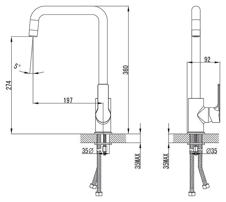 Смеситель Kaiser Oval 56044 предназначен для использования в кухонных помещениях для подачи холодной и горячей воды. Модель оснащена керамическим картриджем, обеспечивающим плавный ход рычага смесителя, контроль и точность при выборе напора и температуры воды, а также аэратором для создания мягкой ровной струи без разбрызгивания. Изделие выполнено из высококачественной латуни, отличающейся прочностью, долговечностью и устойчивостью к перепадам температур. В комплект поставки входят аэратор, гибкая подводка и крепления. Особенности:
