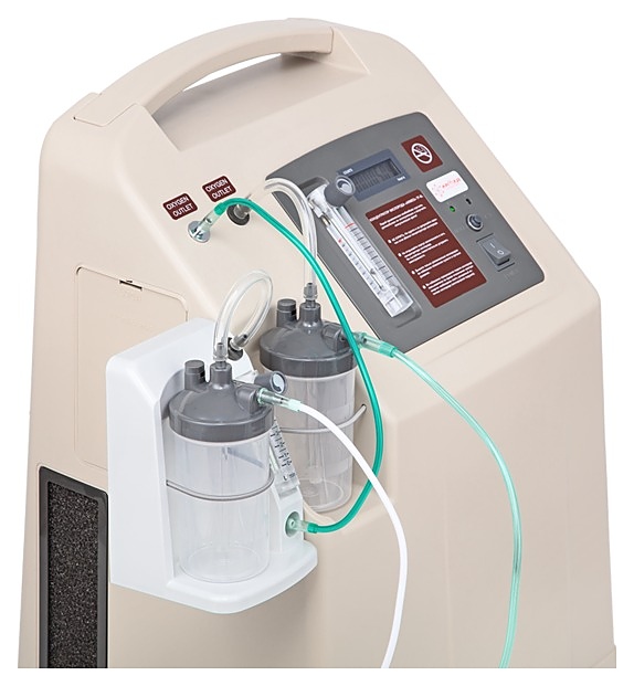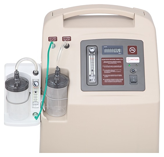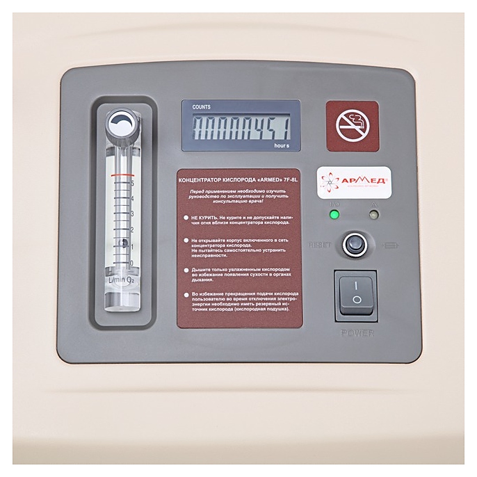 Концентратор кислорода Армед 7F-8L используется в медицинских, лечебно-профилактических учреждениях и домашних условиях для выделения кислорода из окружаюшего воздуха, профилактики и лечения бронхиальной астмы, обструктивного бронхита, острых респираторных инфекций и других заболеваний дыхательных путей, а также для ингаляций с лекарственными препаратами, приготовления кислородных коктейлей и сеансов ароматерапии. Принцип работы: абсорбция цеолитом азота из воздуха при прохождении воздушной смеси сквозь молекулярное решето, фильтрация и увлажнение с получением высококонцентрированной кислородной смеси на выходе. Модель оснащена регулятором потока, расходомером, кабелем питания с вилкой, панелью управления с выключателем, цифровым дисплеем и светодиодными лампами индикации. Корпус изготовлен из ударопрочного пластика. В комплект поставки входят диффузор и 2 кислородные канюли со шлангами различной длины. Особенности: