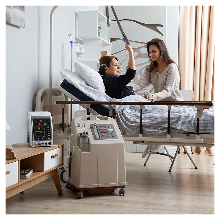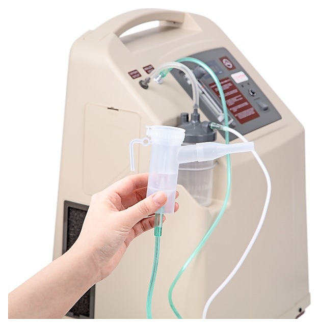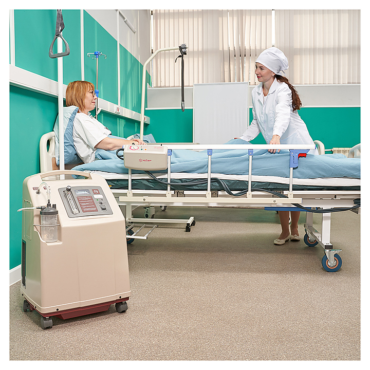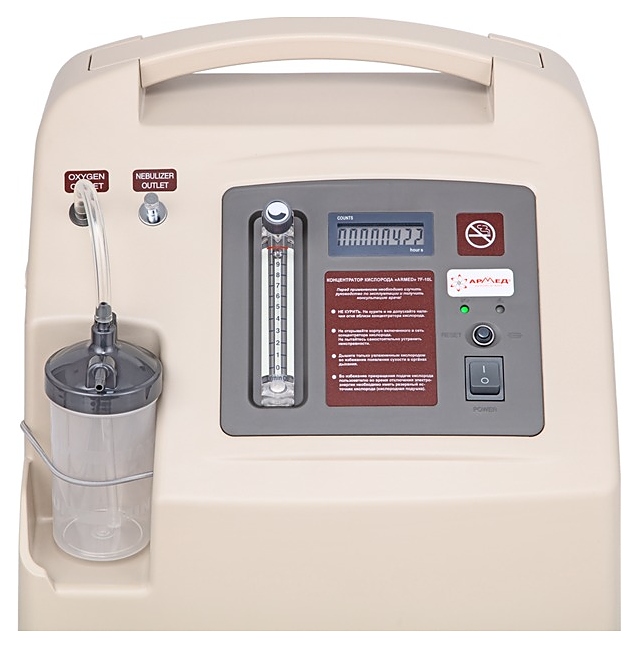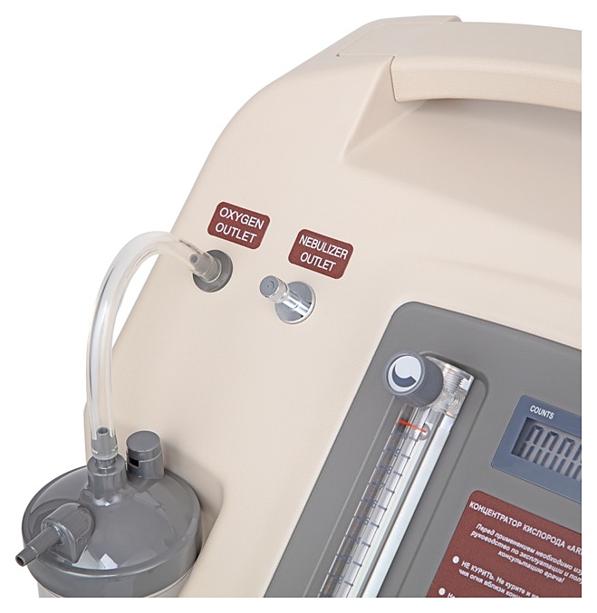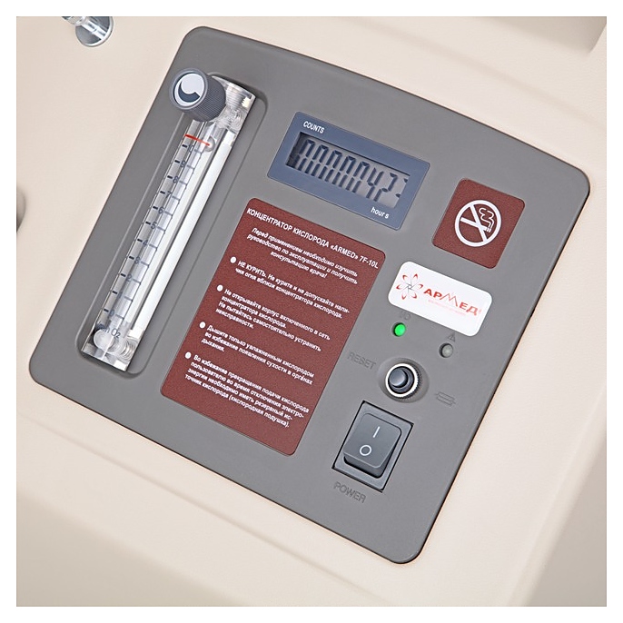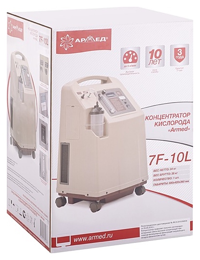 Концентратор кислорода Армед 7F-10L используется в медицинских, лечебно-профилактических учреждениях и домашних условиях для выделения кислорода из окружаюшего воздуха, профилактики и лечения бронхиальной астмы, обструктивного бронхита, острых респираторных инфекций и других заболеваний дыхательных путей, а также для ингаляций с лекарственными препаратами, приготовления кислородных коктейлей и сеансов ароматерапии. Принцип работы: абсорбция цеолитом азота из воздуха при прохождении воздушной смеси сквозь молекулярное решето, фильтрация и увлажнение с получением высококонцентрированной кислородной смеси на выходе. Модель оснащена регулятором потока, расходомером, кабелем питания с вилкой, держателем для кабеля, панелью управления с выключателем, цифровым дисплеем и светодиодными лампами индикации. Корпус изготовлен из ударопрочного пластика. В комплект поставки входят диффузор, 2 кислородные канюли со шлангами различной длины и набор для ингаляций. Особенности: