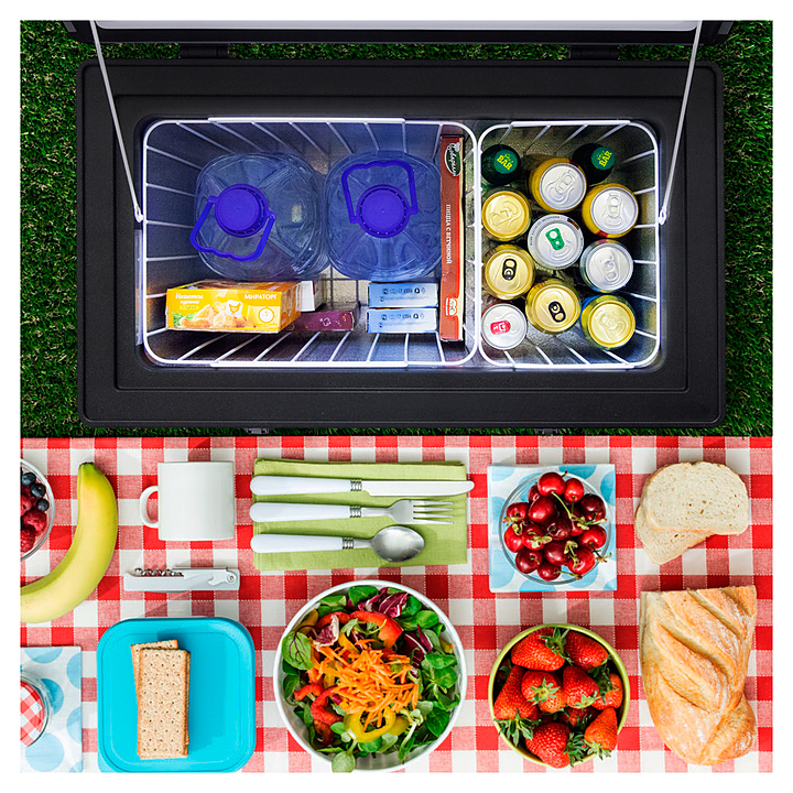 Автохолодильник Indel B TB60 (OFF) предназначен для охлаждения, кратковременного хранения и транспортировки продуктов и напитков в транспорте. Модель оснащена компрессором и электронным термостатом, произведенными из высококачественных компонентов. В комплект поставки входят большая корзина, малая корзина и шнуры для подключения через прикуриватель или обычную розетку. Особенности: