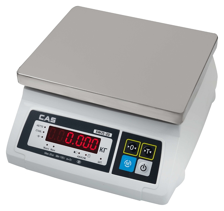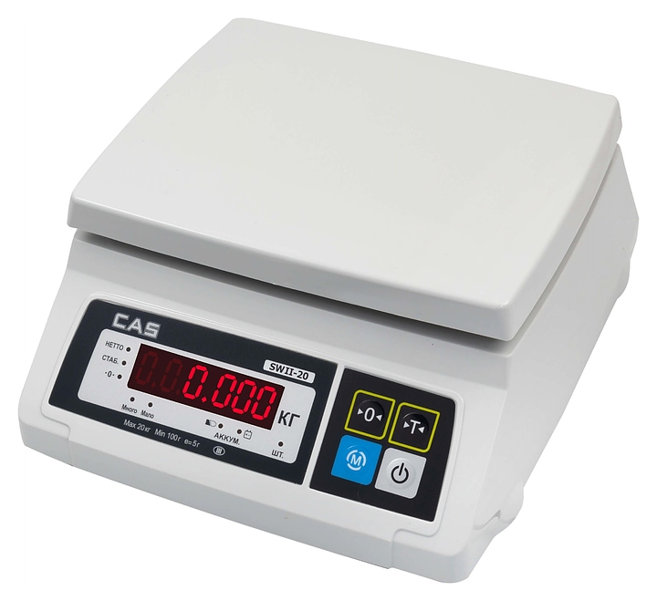 Порционные весы CAS SWII-20 без стойки используются на предприятиях общественного питания и торговли. Модель оснащена ярким cветодиодным дисплеем, выражением массы в количестве изделий (счетный режим) и индикацией разрядки батареи. Платформа выполнена из пластика. В комплект поставки входит адаптер питания. Особенности: