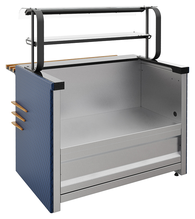 Мармит для первых блюд Refettorio Case RMN12A используется в составе линии раздачи Case на предприятиях общественного питания и торговли для поддержания в горячем состоянии и последующей раздачи первых блюд. Модель оснащена вместительной столешницей для размещения электросупниц. Столешница выполнена из нержавеющей листовой стали толщиной 1,2 мм, фасад - из ламинированного МДФ. Особенности: