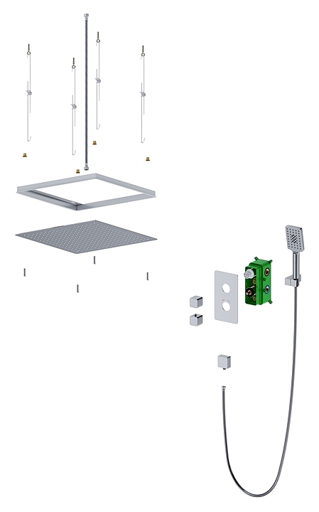 Душевой комплект TIMO Petruma SX-5029/17SM предназначен для использования в ванных помещениях. Серия выполнена в современном стиле. Модель оснащена квадратным верхним душем "Тропический дождь" и ручной лейкой с душевым шлангом. Изделие выполнено из высококачественной латуни, отличающейся прочностью, долговечностью и устойчивостью к перепадам температур. В комплект поставки входят смеситель с монтажной коробкой, тропический душ потолочный, подвесные кронштейны для тропической лейки, подводка к тропической лейке, ручная лейка, держатель ручной лейки, декоративная накладка смесителя, ручка дивертора, ручка управления термостатом, душевой шланг и отвод из стены. Особенности: