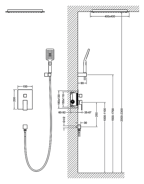 Душевой комплект TIMO Selene SX-2029/03SM предназначен для использования в ванных помещениях. Серия выполнена в стиле модерн. Модель оснащена квадратным верхним душем и ручной лейкой с душевым шлангом, а также керамическим картриджем, обеспечивающим плавный ход рычага смесителя, контроль и точность при выборе напора и температуры воды. Изделие выполнено из высококачественной латуни, отличающейся прочностью, долговечностью и устойчивостью к перепадам температур. В комплект поставки входят смеситель скрытого монтажа, потолочный с установочной коробкой, подвесные кронштейны, подводка к тропической лейке, ручная лейка, держатель ручной лейки, декоративная накладка смесителя, ручка дивертора, душевой шланг и отвод из стены. Особенности: