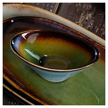 Емкость для соуса Corone Verde HL497070 предназначена для профессионального использования в ресторанах. Посуда изготавливается из профессионального фарфора с покрытием из эффектарной глазури, которая наносится и смешивается вручную, что обеспечивает индивидуальный декор и оттенок каждого изделия. Особенности: