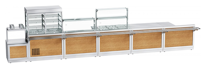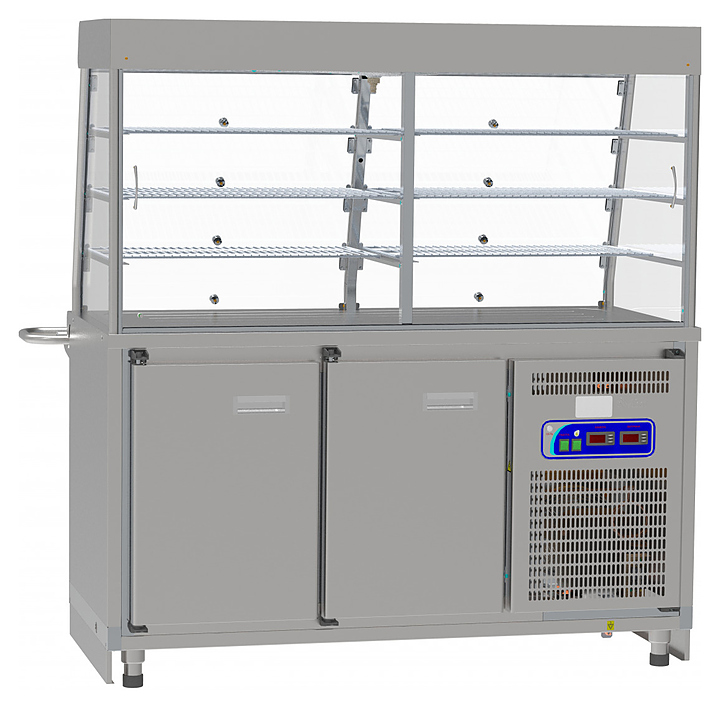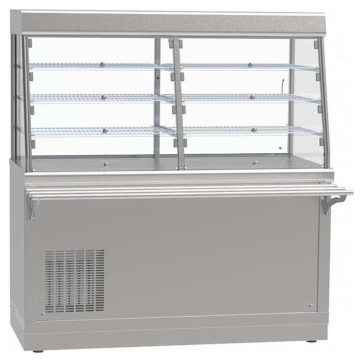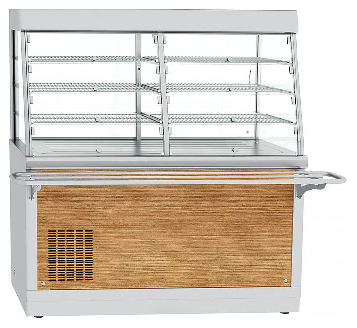 Холодильная витрина Abat ПВВ(Н)-70Х-С-01-ОК используется в составе линии раздачи HOT-LINE на предприятиях общественного питания и торговли для кратковременного хранения, демонстрации и раздачи холодных закусок, третьих блюд и охлажденных напитков потребителю. Модель оснащена 3 вместительными полками, плоской столешницей и регулируемыми по высоте ножками. Особенности: