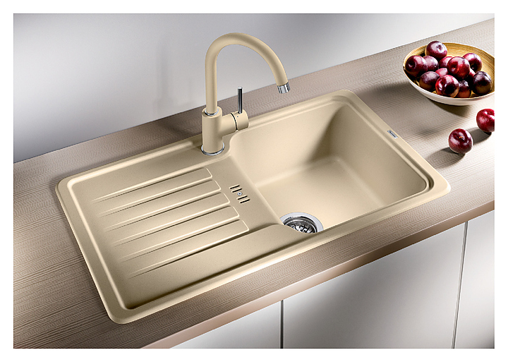 Гранитную мойку Blanco Favos mini практически невозможно повредить, ее прочность и устойчивость к внешним воздействиям сопоставима лишь со стойкостью скалы. Это качество кухонные раковины Blanco приобретают благодаря натуральным элементам гранита, входящим в состав сложного соединения. В комплект поставки входит отводная арматура с корзинчатым вентилем 3½". Дополнительные характеристики: