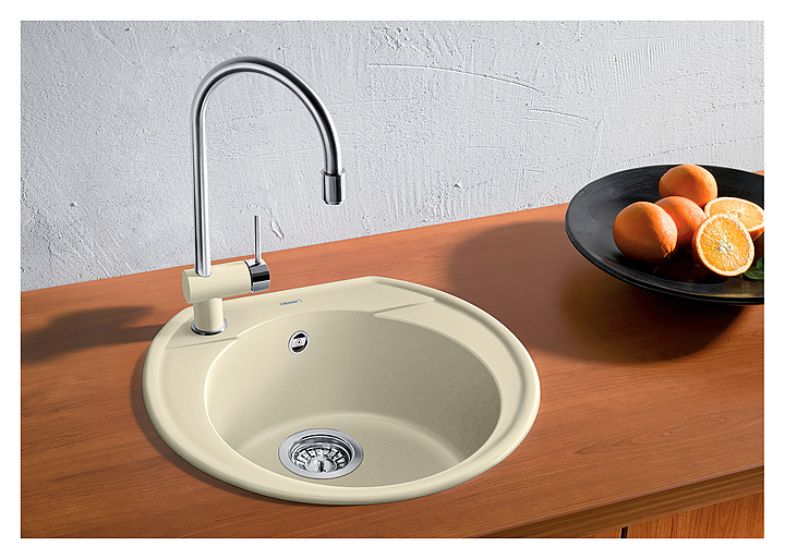 Круглая мойка Blanco Rondoval 45 с глубокой и вместительной чашей замечательно впишется в современный кухонный интерьер. В современном дизайне прямые линии удачно гармонируют с круглой чашей. В комплекте идет отводная арматура с корзинчатым вентилем, форма которого красиво вписывается в общий дизайн. Предусмотрено отверстие для перелива, установка которого позволит контролировать уровень воды в чаше и избежать переливов. Для расширения функциональных возможностей рабочего места можно использовать разделочную доску, которая будет накрывать чашу мойки. Дополнительные характеристики:
