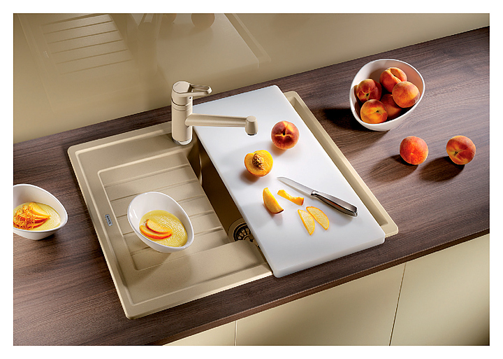 Удобная и компактная мойка Blanco Zia 40 S изготовлена из нового композитного материала SILGRANIT. Благодаря максимальному объему чаши обеспечиваются наиболее комфортные условия для работы и эффективное использование пространства даже маленьких кухонь. Мойка небольшого размера, в которой оптимальным образом сочетаются вместительная чаша и удобное крыло. Прямые линии современного дизайна подчеркиваются узким кантом и оригинальной площадкой по краю крыла. Оборачиваемость мойки позволяет при установке выбрать расположение крыла слева или справа. В комплект поставки входит отводная арматура с корзинчатым вентилем 3½". Дополнительные характеристики:
