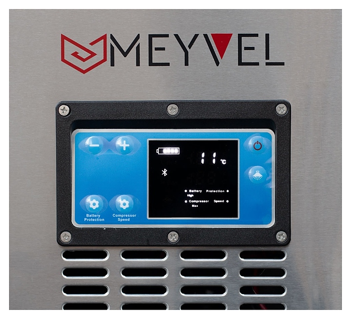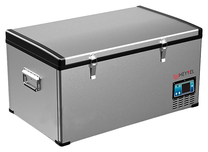 Переносной автохолодильник MEYVEL AF-A85 предназначен для охлаждения и глубокой заморозки, хранения и транспортировки продуктов питания и напитков в легковых и грузовых автомобилях, автодомах, специальной технике, лодках, катерах, яхтах, других видах транспорта и в быту. Модель оснащена компрессором, электронным термостатом, вместительной камерой, дверцей с фиксатором и 2 защелками, кнопочной панелью управления и жидкокристаллическим дисплеем с высокими яркостью и разрешением. Корпус выполнен из нержавеющей стали, облицовка камеры – из алюминия, теплоизоляция – пенополиуретан высокой плотности. В комплект поставки входит кабель питания, инструкция по эксплуатации и гарантийный талон. Особенности: