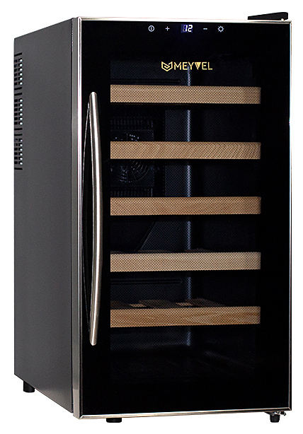 Винный шкаф MEYVEL MV18-BF1 (easy) предназначен для демонстрации, хранения и создания оптимальных условий для сохранения всех вкусовых свойств вина в бутылках на предприятиях общественного питания, торговли, в барах, ресторанах, специализированных магазинах, частных домах или квартирах. Модель оснащена электронной панелью управления, электронным термостатом и светодиодной подсветкой. Корпус выполнен из окрашенной в черный цвет стали, дверь - из стальной окантовки и двойного стекла с защитой от ультрафиолетовых лучей, ручка двери - из стали, полки - из массива бука. Особенности: