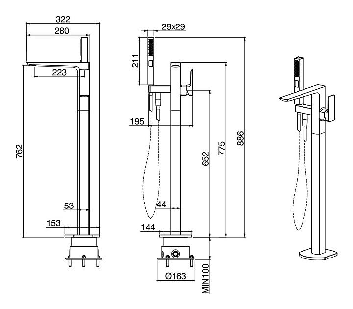 Смеситель для ванны с душем напольный Allen Brau Infinity 5.21009-31