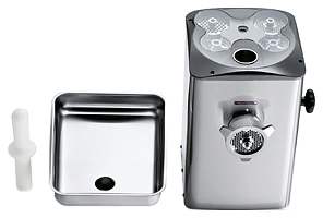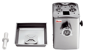 Мясорубка Sirman TC 22 BARCELLONA T UNGER предназначена для измельчения мяса и рыбы на фарш, повторного измельчения котлетной массы и набивки колбас на предприятиях общественного питания и торговли. Модель оснащена системой вентиляции мотора, обеспечивающей защиту от перегрева. Корпус, горловина и шнек выполнены из нержавеющей стали. В комплект поставки входят подрезная решетка, 2 двусторонних ножа, 2 решетки с отверстиями (крупная и мелкая), толкатель из пластика. Особенности: