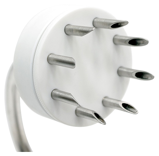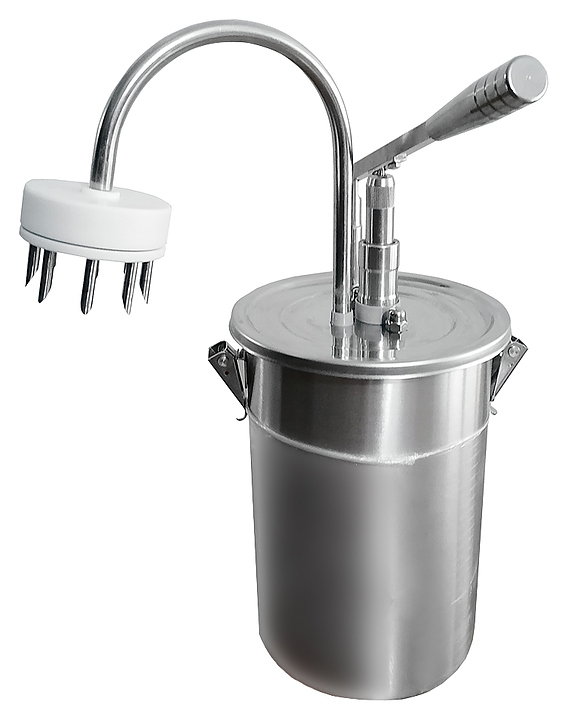В комплект поставки входят емкость объемом 4,5 л, 8 игл и насадка с основанием. Рычаг, съемные иглы и емкость выполнены из нержавеющей стали.