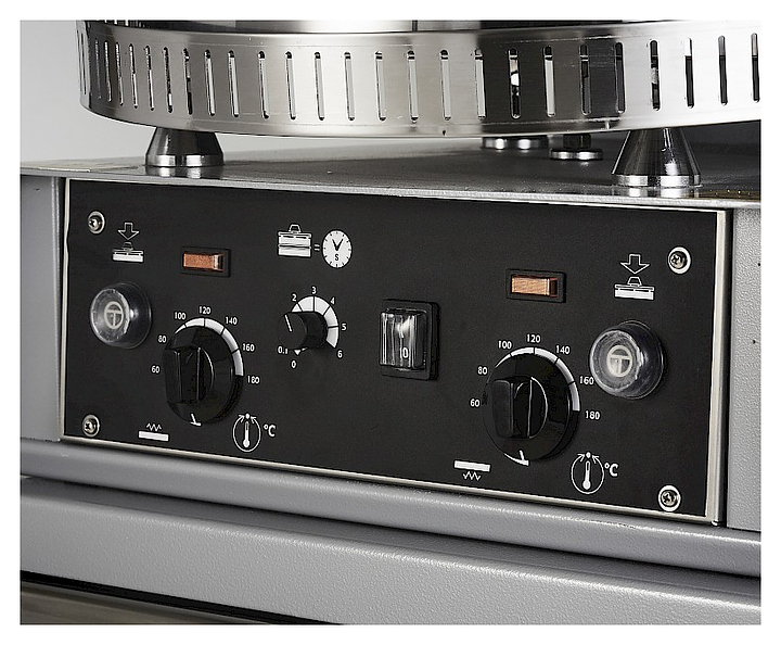 Термический пресс для пиццы OEM-ALI PF33MT SV4 используется на предприятиях пищевой промышленности, общественного питания и торговли, в пекарнях и кондитерских для получения круглой тестовой основы (краста) для дальнейшего приготовления пиццы. Модель оснащена механическим приводом и раздельными термостатами для контроля температуры верхней и нижней пластин. Края пластин загнуты на 2 мм, что позволяет получить заготовку с бортиками. Особенности: