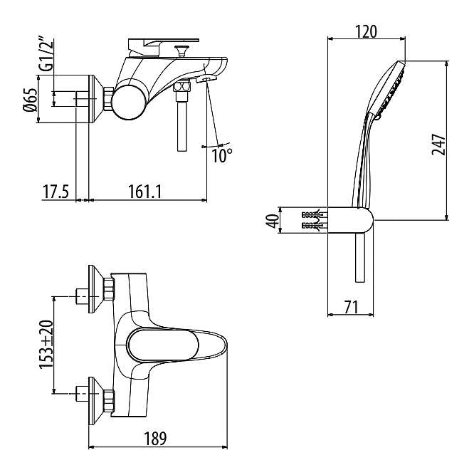 Смеситель для ванны и душа с душевым гарнитуром Gattoni H2Omix7000 7000070NO