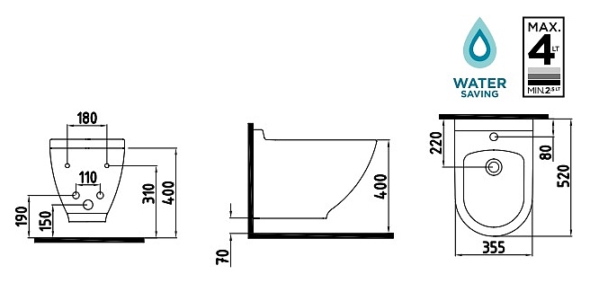 Биде Bien Harmony HRBA05201VD1W3000 от популярного турецкого бренда легко впишется в любой интерьер. Благодаря подвесной конструкции изделие не занимает много места в помещении, а свободное пространство под чашей делает уборку в ванной комнате гораздо легче. Изделие выполнено из санфарфора, который обладает повышенной прочностью и устойчивостью к негативным внешним факторам, а так же долгое время сохраняет идеальную белизну и не впитывает запахи и грязь. Особенности: