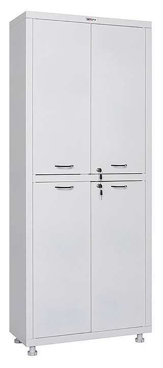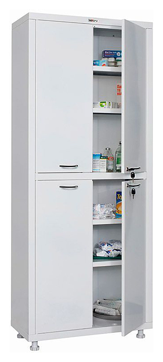 Медицинский шкаф HILFE МД 2 1670/SS предназначен для хранения медикаментов, инструментов,больничных документов, карточек пациентов в медицинских учреждениях и организациях. Модель оснащена ключевыми замками и регулируемыми по высоте ножками. Изделие выполнено из стали с коррозийно-устойчивым порошковым покрытием. В комплект поставки входят ключевые замки HILFE (2000 комбинаций). Дополнительные характеристики: