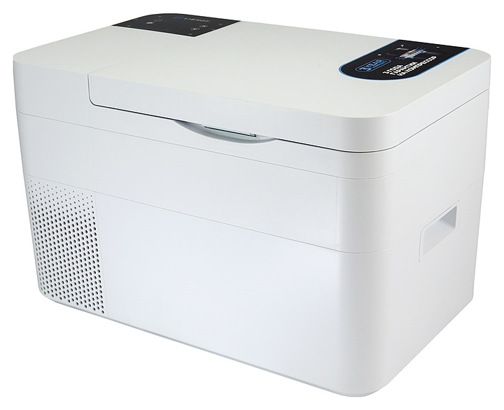 Переносной автохолодильник Libhof X-26 предназначен для охлаждения и глубокой заморозки, хранения и транспортировки продуктов питания и напитков в легковых и грузовых автомобилях, автодомах, специальной технике, лодках, катерах, яхтах, других видах транспорта и в быту. Модель оснащена компрессором, электронным термостатом, камерой с дверцей, сенсорной панелью управления и жидкокристаллическим дисплеем с высокими яркостью и разрешением. Внешняя облицовка корпуса выполнена из прочного пластика, теплоизоляция – пенополиуретан высокой плотности. В комплект поставки входят кабель питания, инструкция по эксплуатации и гарантийный талон. Особенности: