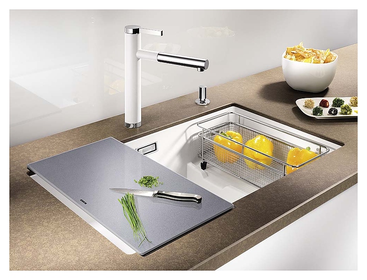 Разделочная доска Blanco Subline 227697 предназначена для приготовления пищи. Модель рекомендуется в качестве дополнительного аксессуара для любых кухонных моек Blanco серии U и Andano. Изделие выполнено из серебристого закаленного стекла. Особенности: