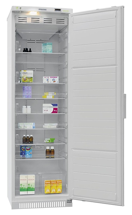 Фармацевтический холодильник POZIS ХФ-400-4 используется в аптеках, больницах и клиниках для хранения лекарственных препаратов, вакцин, реагентов и биологических препаратов. Модель оснащена глухой металлической дверью с ручкой и замком, 2 роликами и 2 регулируемыми опорами. Для удобства пользования дисплей, отображающий температуру, располагается над дверью в зоне постоянной видимости. Теплоизоляция выполнена из пенополиуретана, герметизация дверного проема - из эластичного уплотнителя с магнитной вставкой. В компллект поставки входят металлические полки. Особенности: