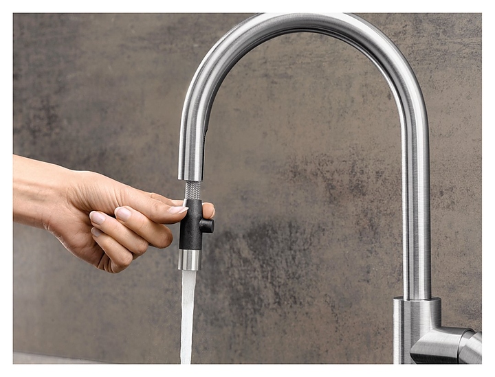 Смеситель Blanco Candor-S 523121 предназначен для использования на кухне для подачи горячей и холодной воды. Модель оснащена удобным рычагом, высоким поворотным, выдвижным изливом и керамическим картриджем. Однорычажный тип управления позволяет очень быстро и плавно регулировать подачу воды одной рукой. Изделие выполнено из высококачественной латуни, которая отличается прочностью, долговечностью и устойчивостью к перепадам температур. Особенности: