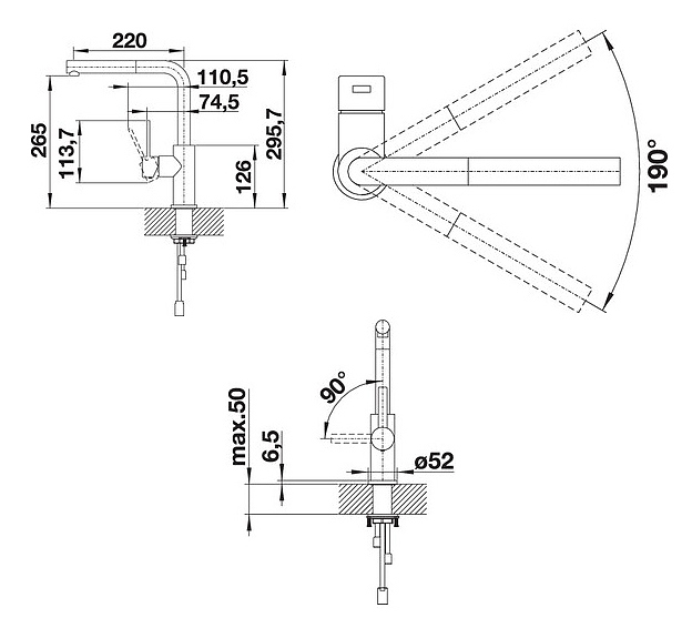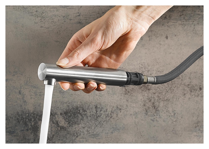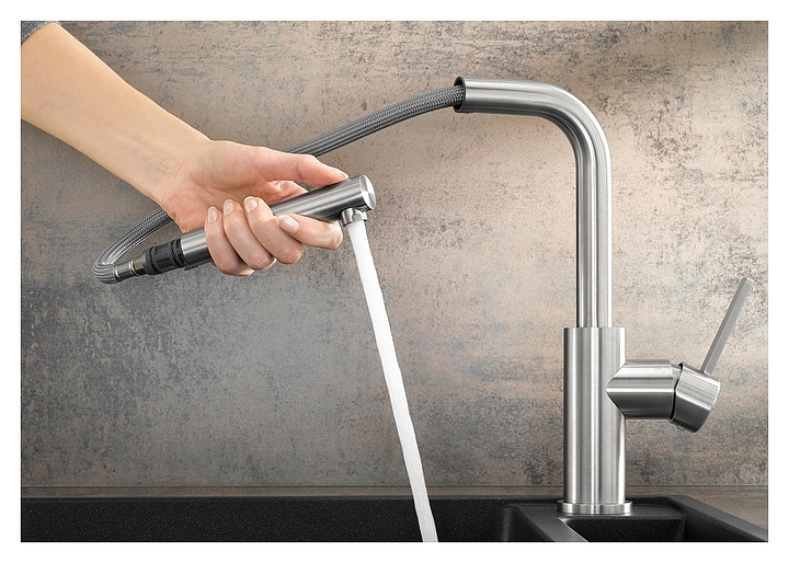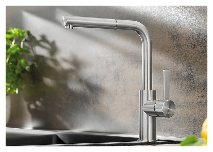 Смеситель Blanco Lanora-S 523123 предназначен для использования на кухне для подачи горячей и холодной воды. Модель оснащена удобным рычагом, высоким поворотным, выдвижным изливом и керамическим картриджем. Однорычажный тип управления позволяет очень быстро и плавно регулировать подачу воды одной рукой. Изделие выполнено из высококачественной латуни, которая отличается прочностью, долговечностью и устойчивостью к перепадам температур. Особенности: