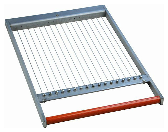 Струнная рамка Pavoni TCH22,5 используется совместно с машинами Chitarra и Chitarra Doppio Taglio BCD/I в пекарнях и кондитерских, на предприятиях пищевой промышленности и общественного питания для нарезки бисквита, мягкого шоколада, ганаша и других кондитерских масс на заготовки одинакового размера. Модель оснащена тонкими металлическими струнами, расположенными через каждые 22,5 мм. Изделие выполнено из нержавеющей стали. Характеристики: